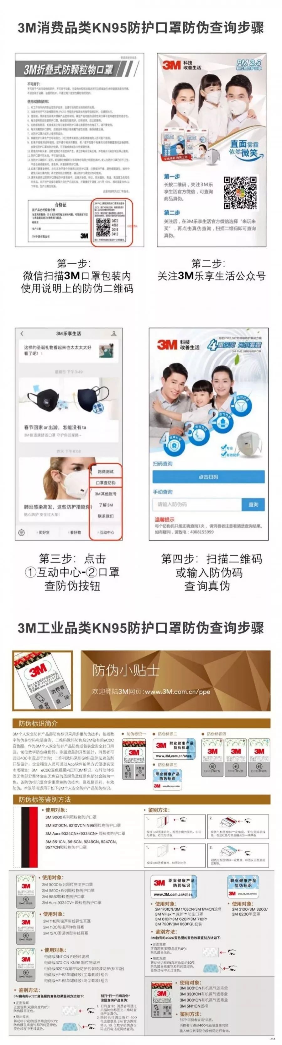 如果是買到盒裝3M N95/KN95系列口罩的話,可以通過上圖步驟,在3M樂享生活公眾號查詢防偽碼驗(yàn)證真?zhèn)巍?/span>