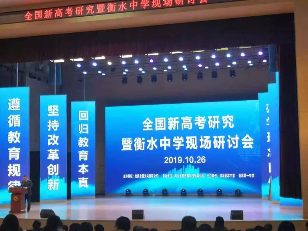 最后,我們聆聽了河北衡水中學(xué)副校長(zhǎng)康新江有關(guān)《衡水新高考實(shí)施策略的報(bào)告》,他在報(bào)告中提出,新課改是挑戰(zhàn)與機(jī)遇并存的契機(jī),對(duì)衡水中學(xué)來(lái)說(shuō)是學(xué)校發(fā)展良好的動(dòng)力,他認(rèn)為,衡中的優(yōu)勢(shì)在先進(jìn)的辦學(xué)理念,嚴(yán)格的管理制度。他深信衡水學(xué)子在“大五觀”的引領(lǐng)下,定能在2020年的高考中勇奪桂冠,再創(chuàng)佳績(jī)。