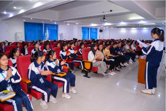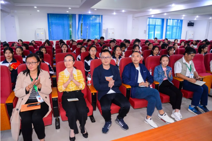 谷希歐公司董事長(zhǎng)袁應(yīng)權(quán)、總經(jīng)理陳彥榮、業(yè)務(wù)骨干雷麗紅,高新技校校長(zhǎng)助理孫建華、教務(wù)處處長(zhǎng)田春元、經(jīng)貿(mào)系主任向莎莎、商務(wù)外語(yǔ)專業(yè)負(fù)責(zé)人劉敏、17商務(wù)外語(yǔ)高技班主任陳靜儀、商務(wù)外語(yǔ)組全體教師出席了儀式,17商務(wù)外語(yǔ)高技班全體同學(xué)來(lái)到了現(xiàn)場(chǎng)。17商英高技班諸敏同學(xué)擔(dān)任了本次儀式的主持。