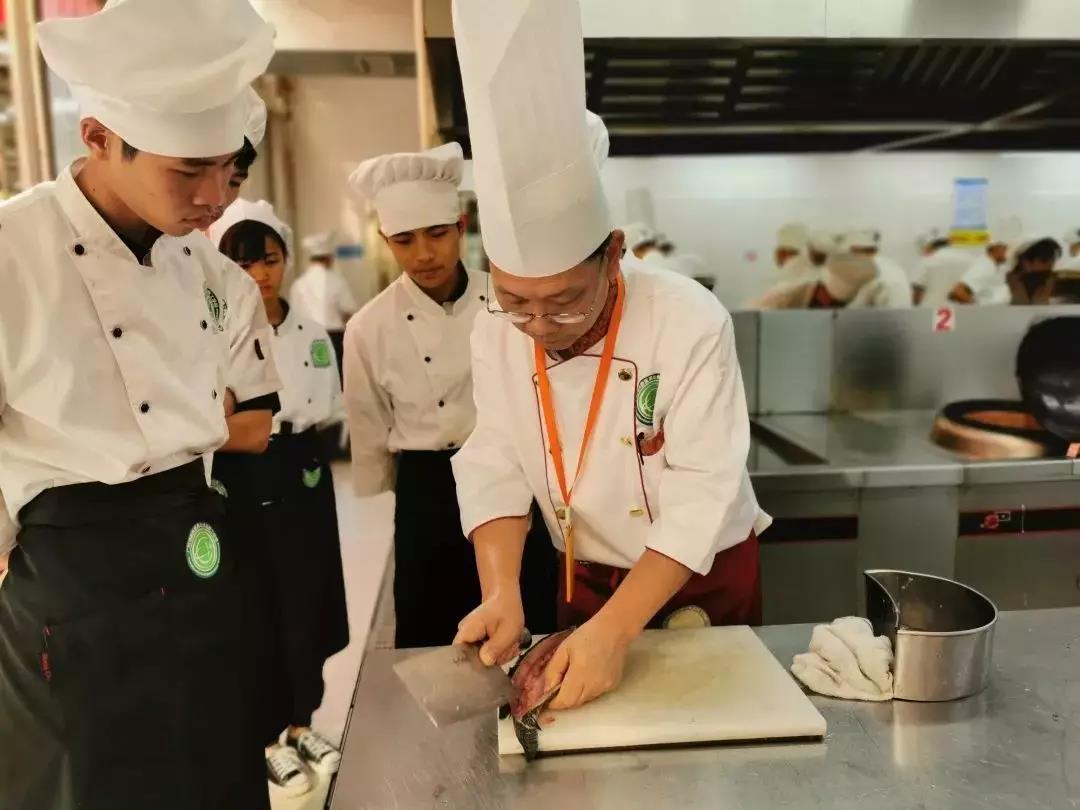 吳曉藍(lán)在教學(xué)上對學(xué)生要求嚴(yán)格,他從原材料的選擇、刀工、火候、擺盤都要求學(xué)生做到精益求精。學(xué)生們很樂意跟隨這位大師傅學(xué)廚藝,覺得能學(xué)到真本領(lǐng)。