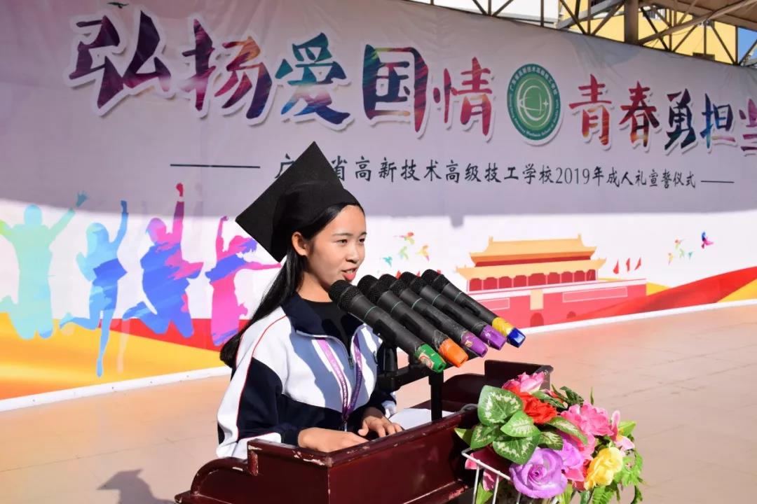 11月29日,廣東省高新技術高級技工學校 “弘揚愛國情,青春勇擔當”2019成人禮活動在校團委組織下于西區足球場盛大舉行。
