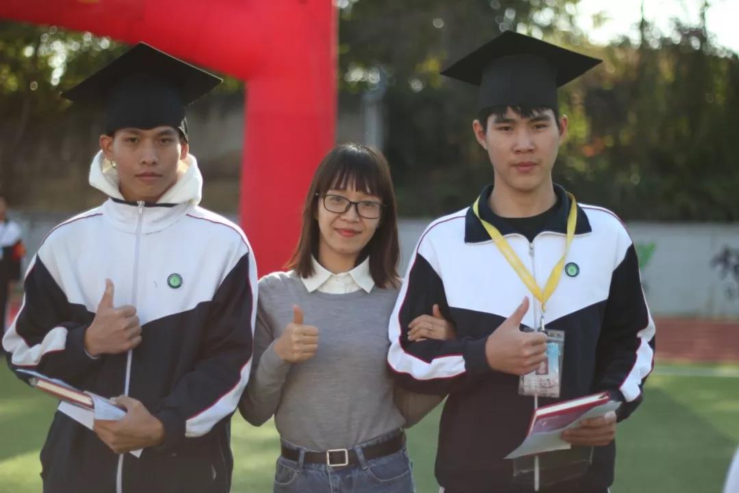 “孩子,首先你要學會感恩。感恩你們的父母,感恩你們的老師……勇敢地面對困難,堅定地走出每一步……”18電商9班黃慶成的家長將三句話,七個字“感恩”、“勇敢”、“正能量”,代表全體家長寄語并祝愿孩子們,未來擁有一個快樂且夢想成真的美好人生。