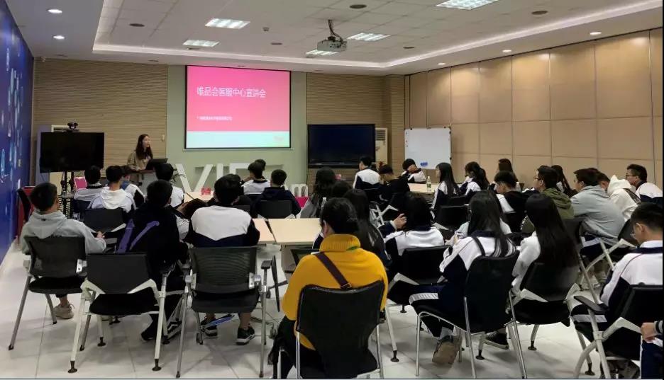 參觀唯品會客服中心時,部門負責人對每個部門進行講解過后,同學們還聽取了前輩們分享實戰(zhàn)經(jīng)驗。