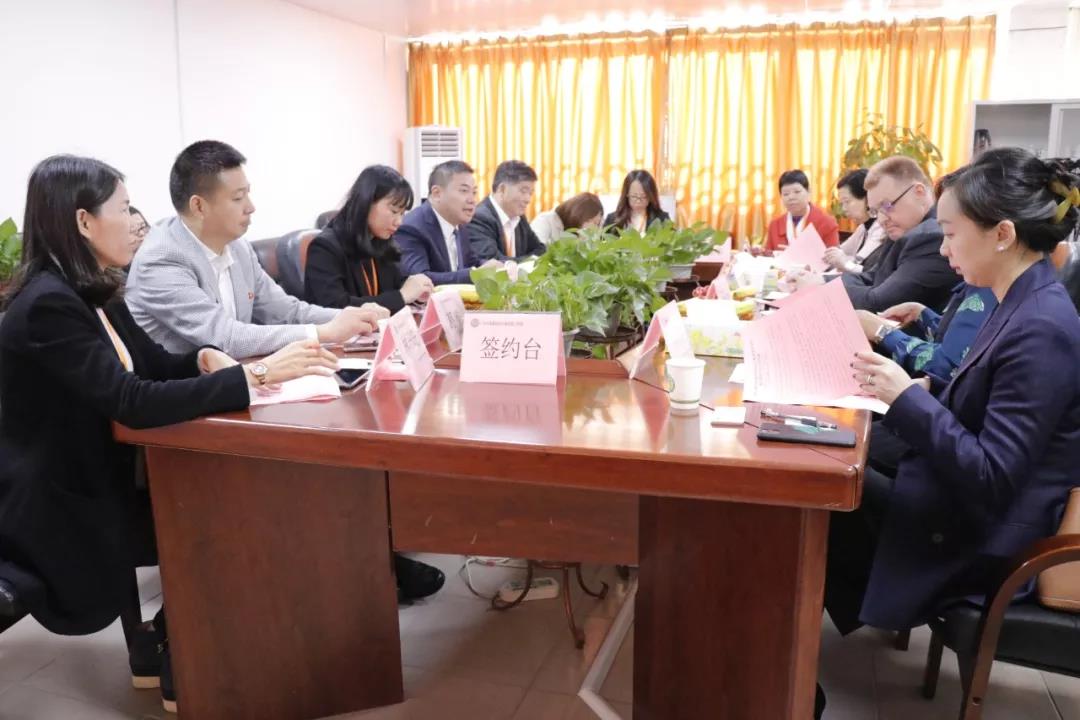 由EHI校長Mr.Stuart與我校常務副校長麥文婷簽署,澳大利亞政府貿易投資委員會商務官員周覓瓊與高新教育集團董事長張天培在旁見證。