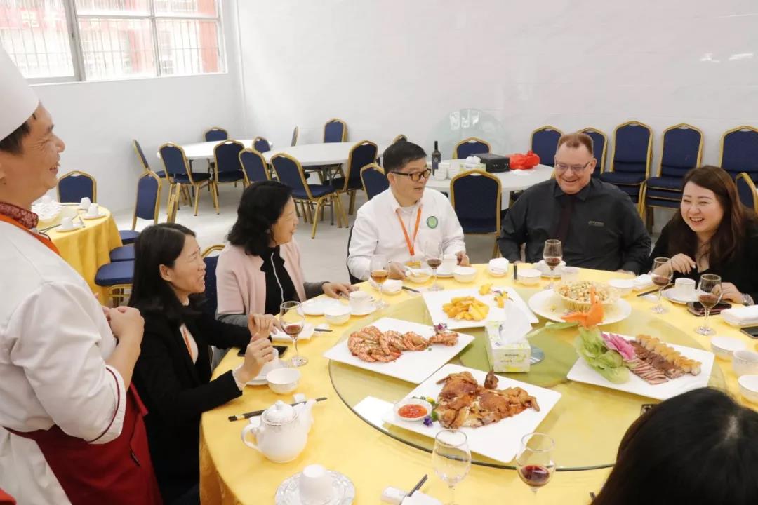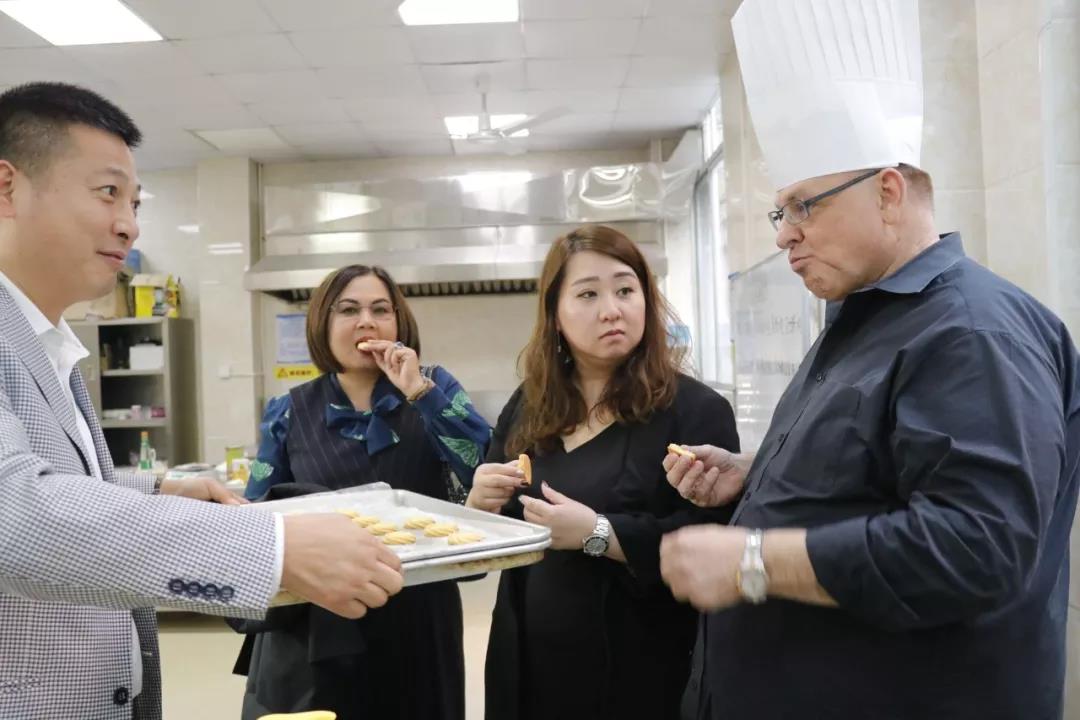 參觀過程中,來賓們對我校中餐烹調及面點制作課堂表現出強烈的興趣,Mr.Stuart表示,這樣的課堂氛圍非常好,學生以小組為單位,大家相互協作,凝結智慧,制作出的作品都是獨一無二的。