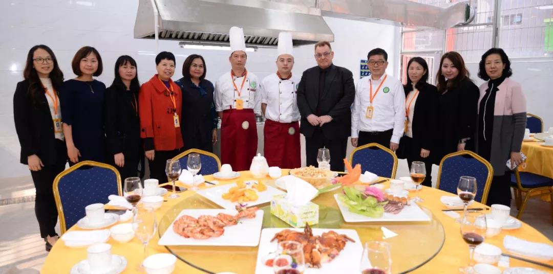12日上午,包括澳大利亞政府貿易投資委員會商務官員周覓瓊、EHI校長Mr.Stuart、首席運營官Ms.Bubpa、亞洲區域市場經理周敏怡、中國項目經理歐陽云在內的一行來賓便早早抵達我校,在我校領導及老師的陪同下參觀了烹飪專業各大實訓室。