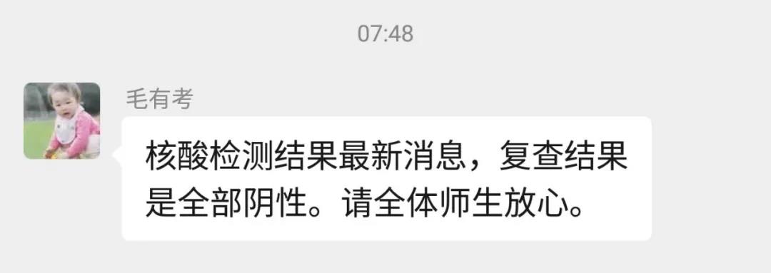在上級部門的關(guān)懷和支持下,10月16日下午,廣東省高新技術(shù)高級技工學校進行了全員篩查,次日清晨公布了結(jié)果:高新技校內(nèi)的全體師生、家屬、工勤人員等7383人,全部為 核酸檢測陰性!