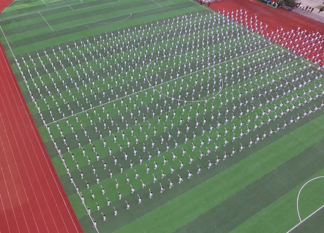 潔白的和平鴿應(yīng)聲而起飛向藍(lán)天,鼓樂隊(duì)奏響激昂的運(yùn)動(dòng)員進(jìn)行曲,班旗方陣與彩旗方陣的百余名同學(xué)擎著代表班級(jí)榮譽(yù)的旗幟,帶起陣陣破風(fēng)之聲,這聲音不僅預(yù)示著運(yùn)動(dòng)會(huì)的勝利開幕,更彰示著自貢衡川定將勢(shì)如破竹,走向更高的天空。初一、高一 花球啦啦操
