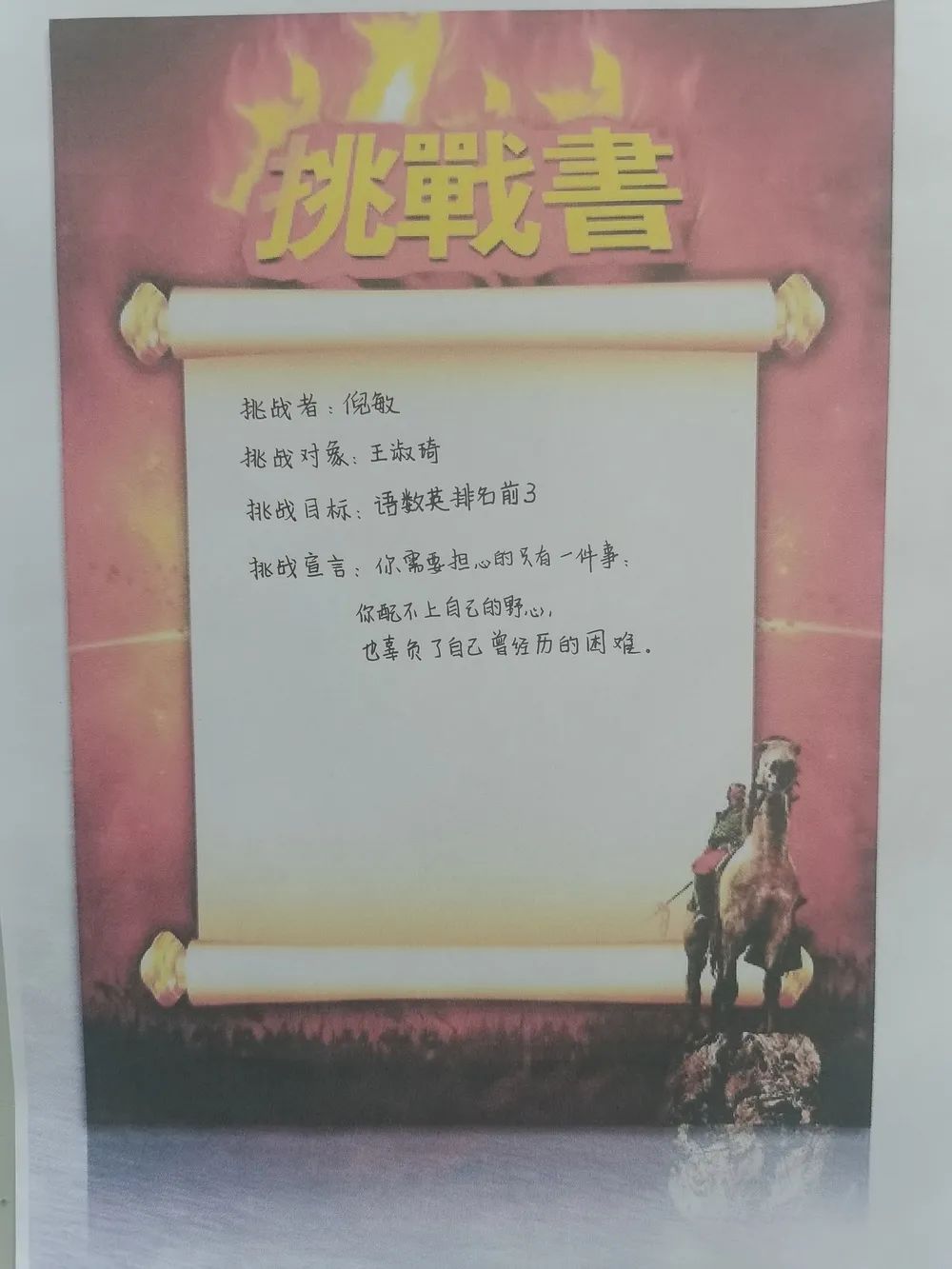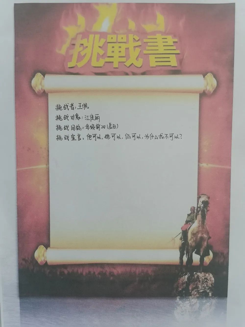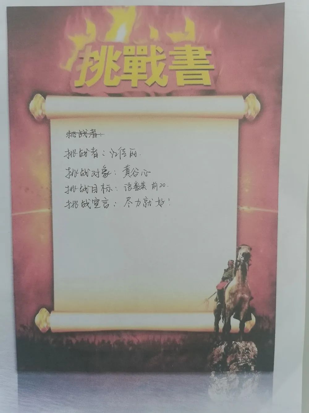 最后全體學生激情寫下挑戰書并莊嚴宣誓,承諾珍惜學習時間,誠信考試。