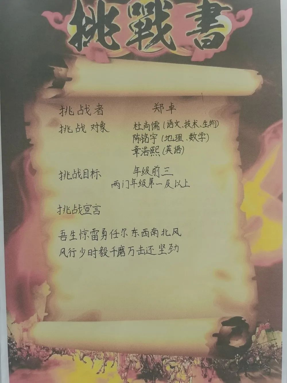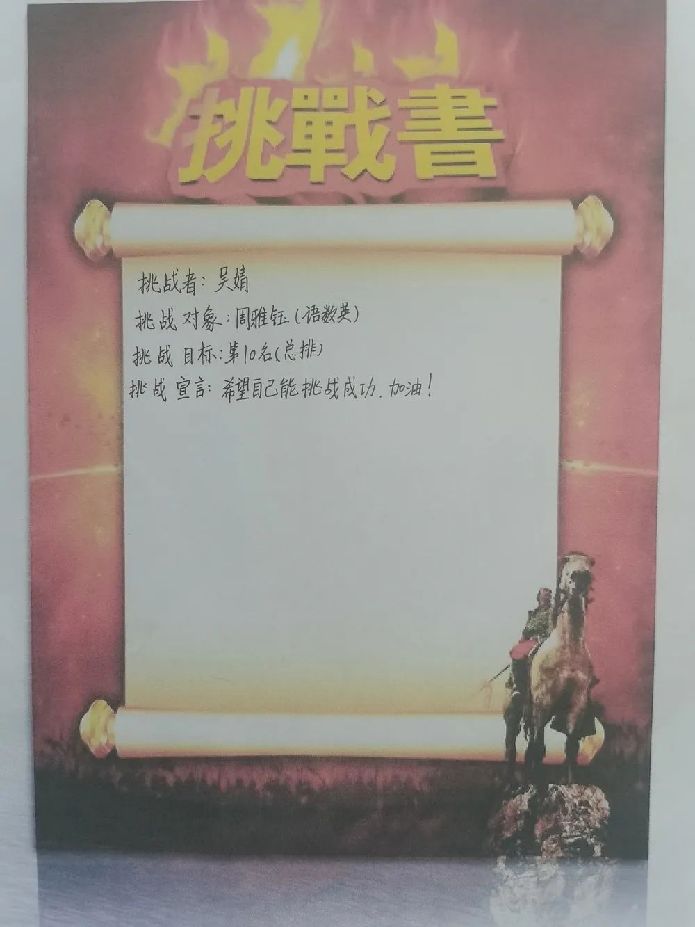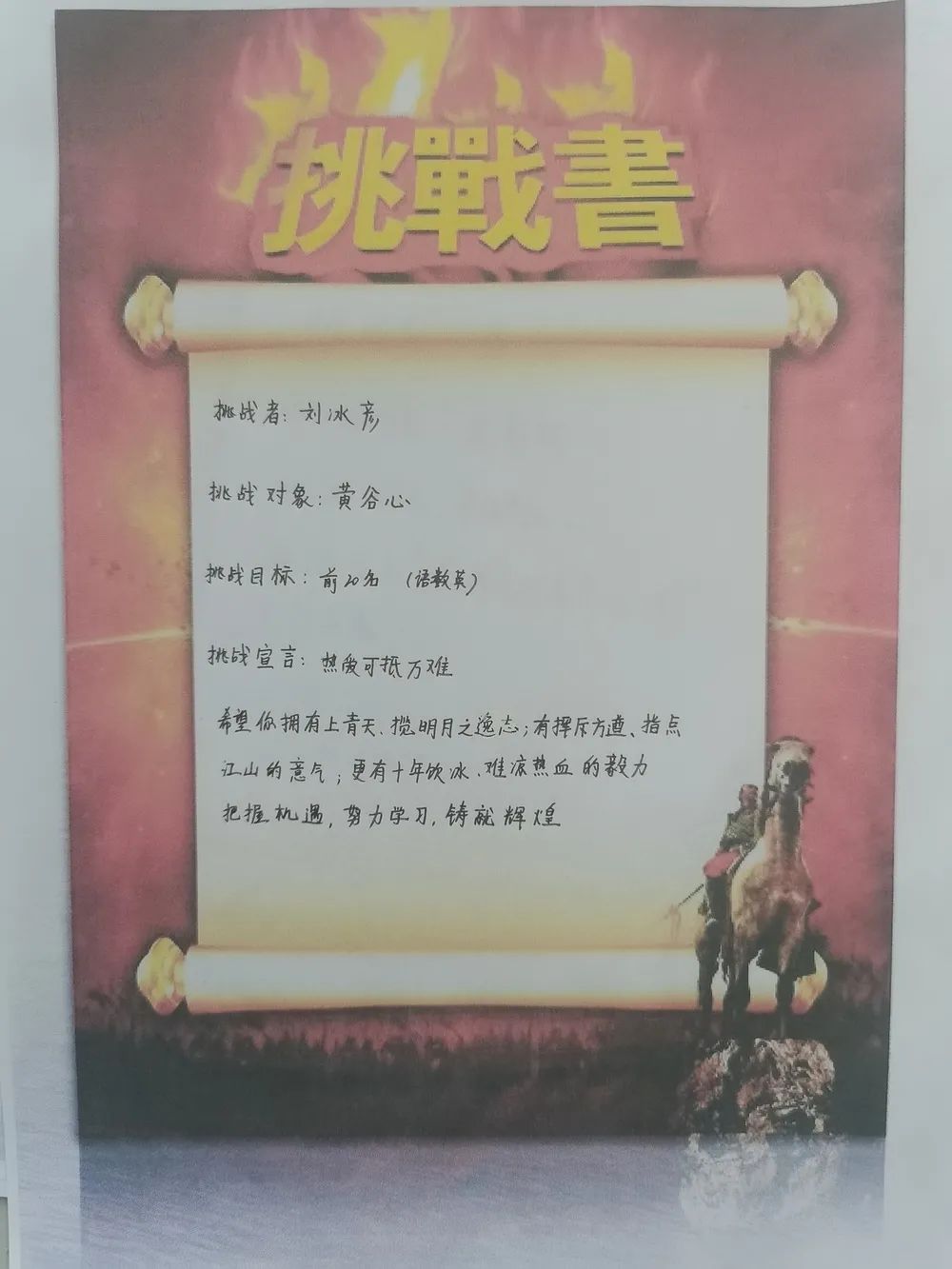 最后全體學生激情寫下挑戰書并莊嚴宣誓,承諾珍惜學習時間,誠信考試。