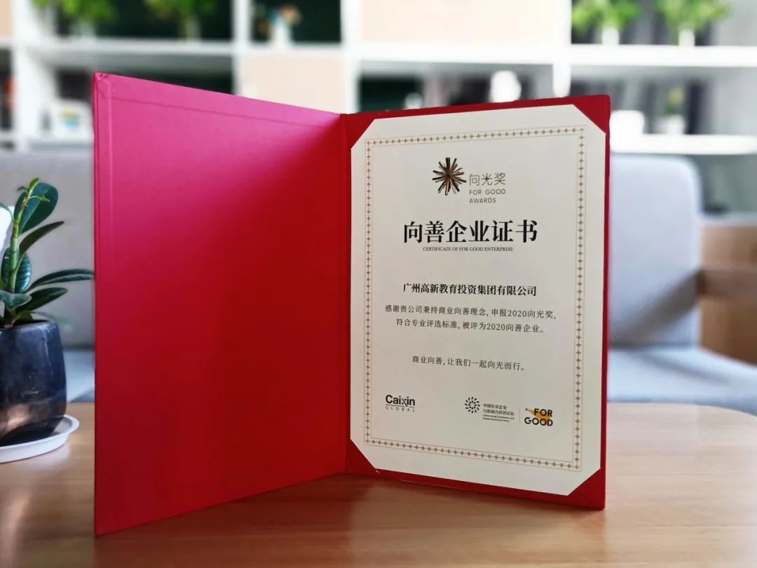 廣州高新教育集團成功入選2020向光獎|向善企業(yè)名錄,榮膺“向善企業(yè)”榮譽。