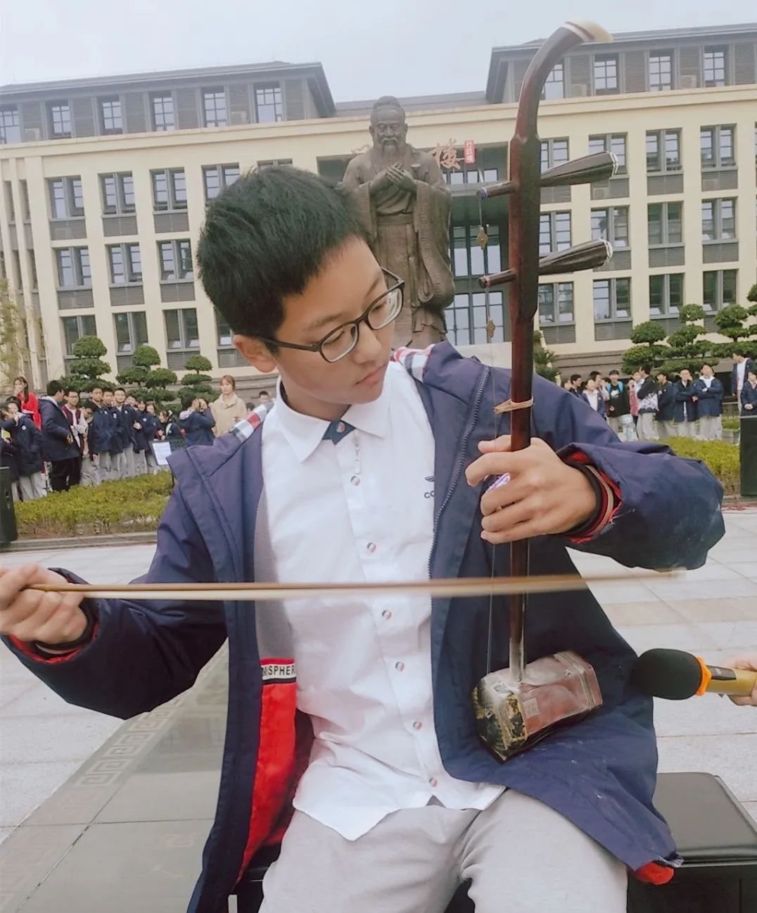 揚琴、吉他、鋼琴、長號等樂器輪番上場,街舞、說唱、中國舞、朗誦等表演方式層出不窮。火熱的節奏,勁爆的音樂,悠揚的樂聲在孔子廣場交織,古韻與活力相匯,構成一篇和諧的樂章。