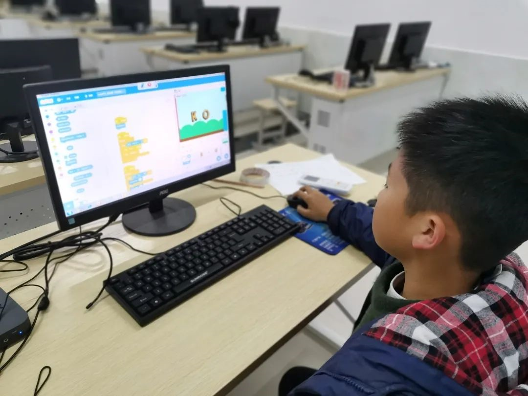 為了更好地提升學生的信息素養,我校開設少兒編程大課堂,孩子們通過項目式開展和小組合作的方式,使用圖形化編程語言Scratch創作,理解順序、并行、重復結構、偵測條件等計算思維中的重要基礎概念和算法知識,既鍛煉了邏輯思維能力和創新能力,也增強了其不斷試錯和解決問題的能力。